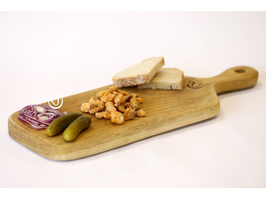 vepřové škvarky 97%, jedlá sůl, paprika, cibule, pepř, rozmarýn.