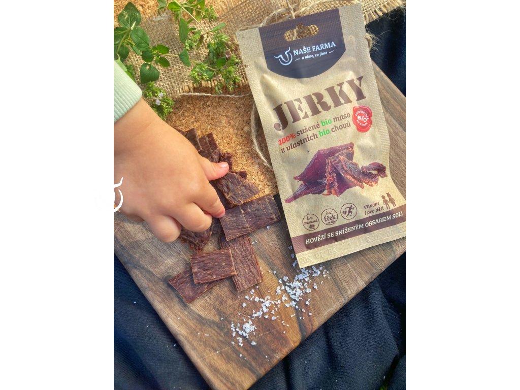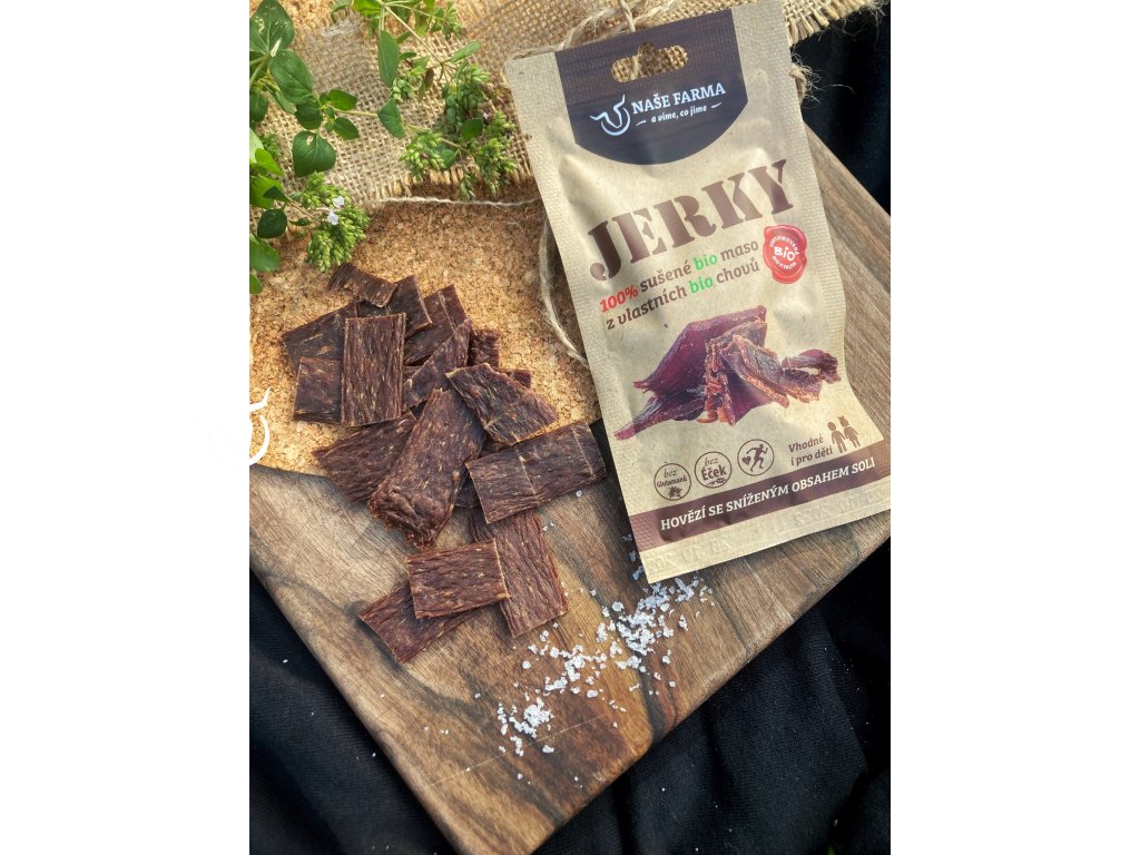 BIO hovězí JERKY natur se sníženým obsahem soli